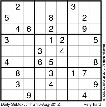 The Daily SuDoku: Thu 16-Aug-2012