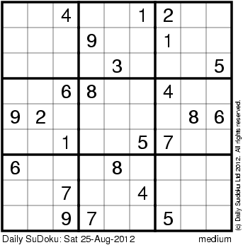 The Daily SuDoku: Sat 25-Aug-2012