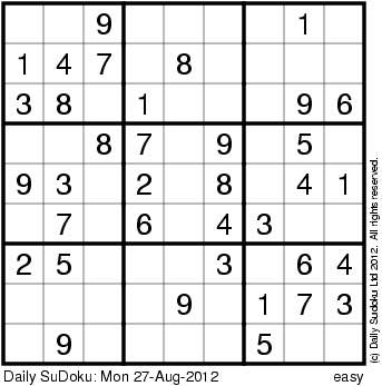 The Daily SuDoku: Mon 27-Aug-2012