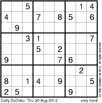 The Daily SuDoku: Thu 30-Aug-2012