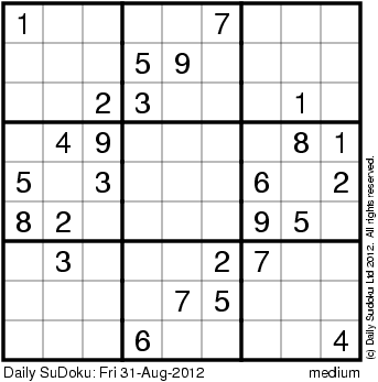 The Daily SuDoku: Fri 31-Aug-2012