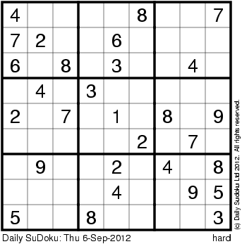 The Daily SuDoku: Thu 6-Sep-2012