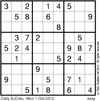 The Daily SuDoku: Mon 1-Oct-2012