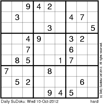 The Daily SuDoku: Wed 10-Oct-2012