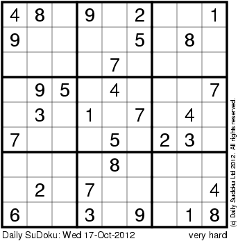 The Daily SuDoku: Wed 17-Oct-2012