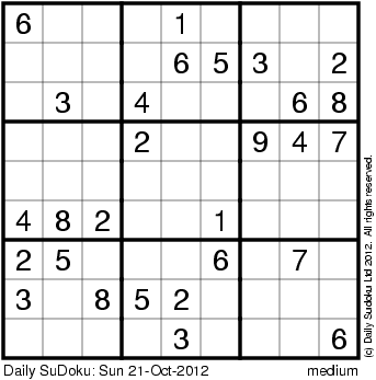 The Daily SuDoku: Sun 21-Oct-2012
