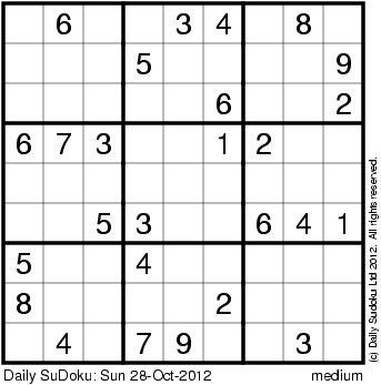 The Daily SuDoku: Sun 28-Oct-2012