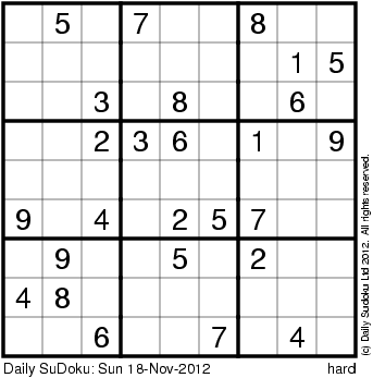 The Daily SuDoku: Sun 18-Nov-2012