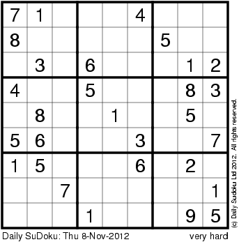 The Daily SuDoku: Thu 8-Nov-2012