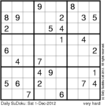 The Daily SuDoku: Sat 1-Dec-2012
