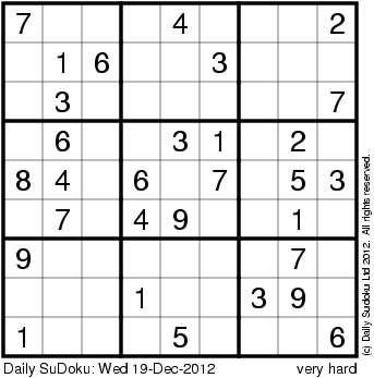 The Daily SuDoku: Wed 19-Dec-2012