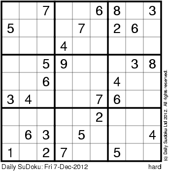 The Daily SuDoku: Fri 7-Dec-2012