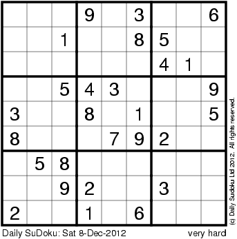 The Daily SuDoku: Sat 8-Dec-2012