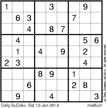 The Daily SuDoku: Sat 12-Jan-2013