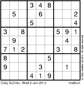 The Daily SuDoku: Wed 2-Jan-2013