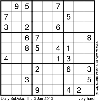 The Daily SuDoku: Thu 3-Jan-2013