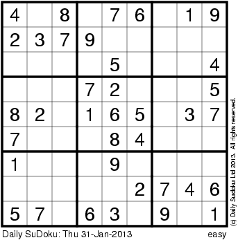 The Daily SuDoku: Thu 31-Jan-2013