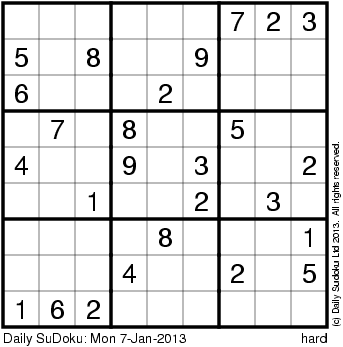 The Daily SuDoku: Mon 7-Jan-2013
