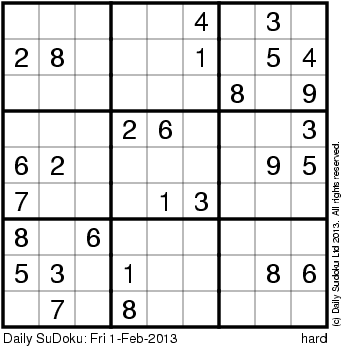 The Daily SuDoku: Fri 1-Feb-2013