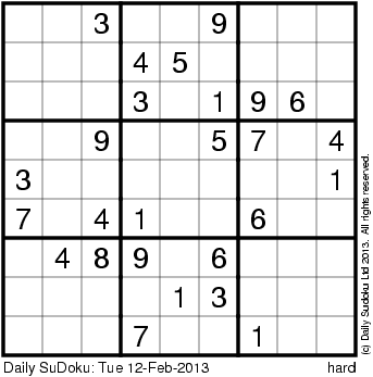 The Daily SuDoku: Tue 12-Feb-2013