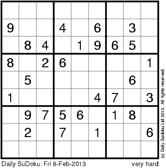 The Daily SuDoku: Fri 8-Feb-2013