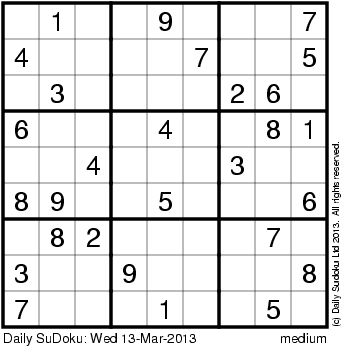 The Daily SuDoku: Wed 13-Mar-2013