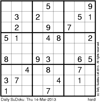The Daily SuDoku: Thu 14-Mar-2013