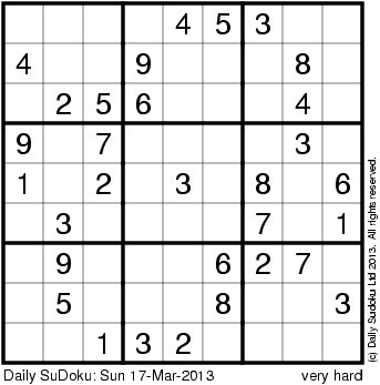 The Daily SuDoku: Sun 17-Mar-2013