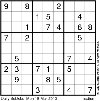 The Daily SuDoku: Mon 18-Mar-2013