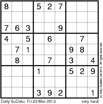 The Daily SuDoku: Fri 22-Mar-2013