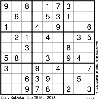 The Daily SuDoku: Tue 26-Mar-2013