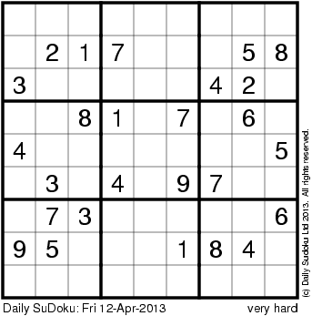 The Daily SuDoku: Fri 12-Apr-2013