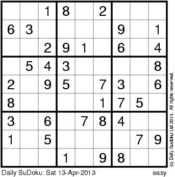 The Daily SuDoku: Sat 13-Apr-2013