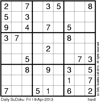 The Daily SuDoku: Fri 19-Apr-2013