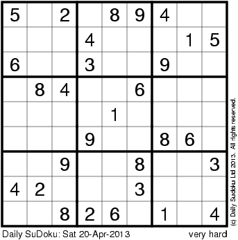 The Daily SuDoku: Sat 20-Apr-2013