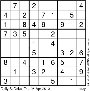 The Daily SuDoku: Thu 25-Apr-2013