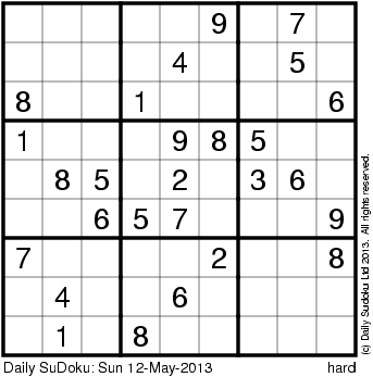 The Daily SuDoku: Sun 12-May-2013