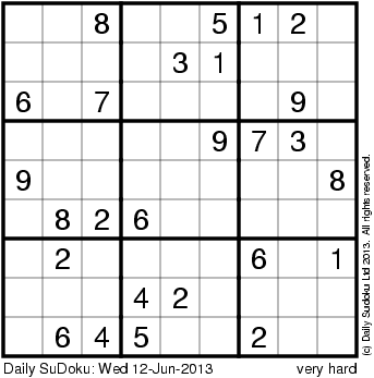 The Daily SuDoku: Wed 12-Jun-2013
