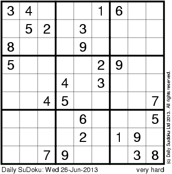 The Daily SuDoku: Wed 26-Jun-2013
