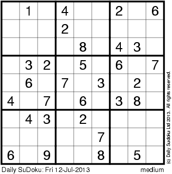 The Daily SuDoku: Fri 12-Jul-2013
