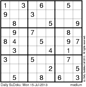 The Daily SuDoku: Mon 15-Jul-2013