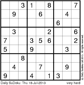 The Daily SuDoku: Thu 18-Jul-2013