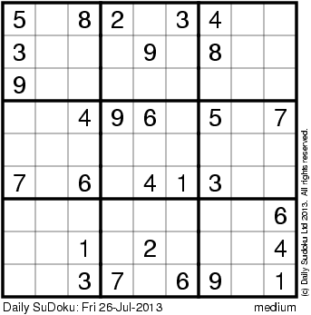 The Daily SuDoku: Fri 26-Jul-2013