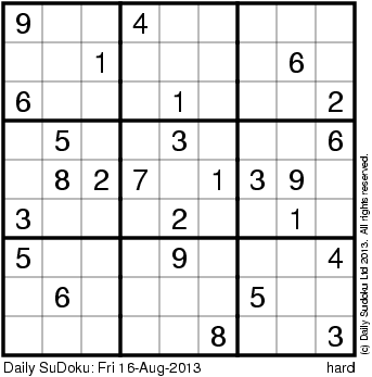 The Daily SuDoku: Fri 16-Aug-2013