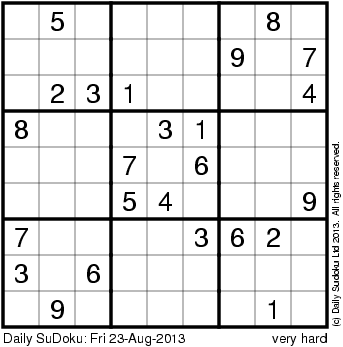 The Daily SuDoku: Fri 23-Aug-2013