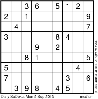 The Daily SuDoku: Mon 9-Sep-2013