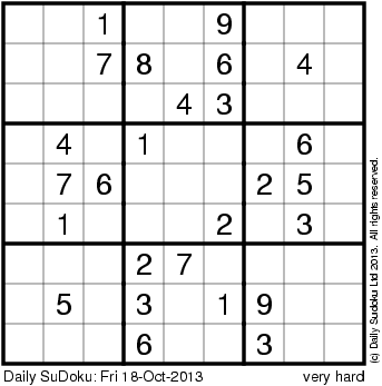 The Daily SuDoku: Fri 18-Oct-2013