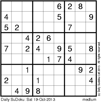 The Daily SuDoku: Sat 19-Oct-2013