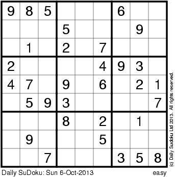 The Daily SuDoku: Sun 6-Oct-2013