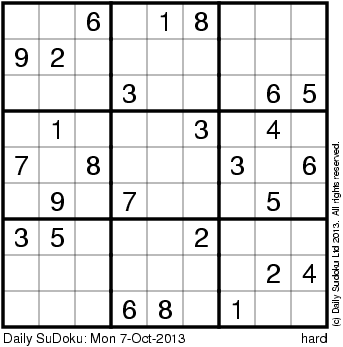 The Daily SuDoku: Mon 7-Oct-2013